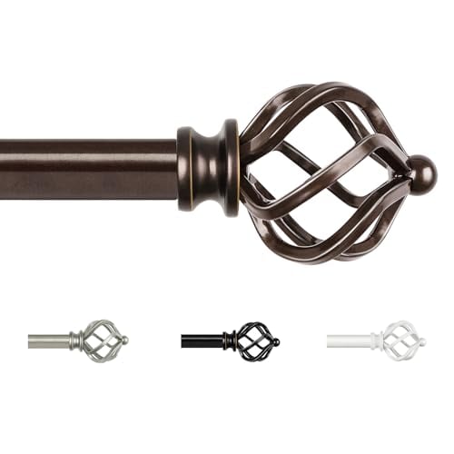 KAMANINA Curtain Poles 80 to 218 cm, Bronze Curtain Pole for Eyelet Curtains, Splicing and Telescoping Curtain Rod with Twisted Cage Finials