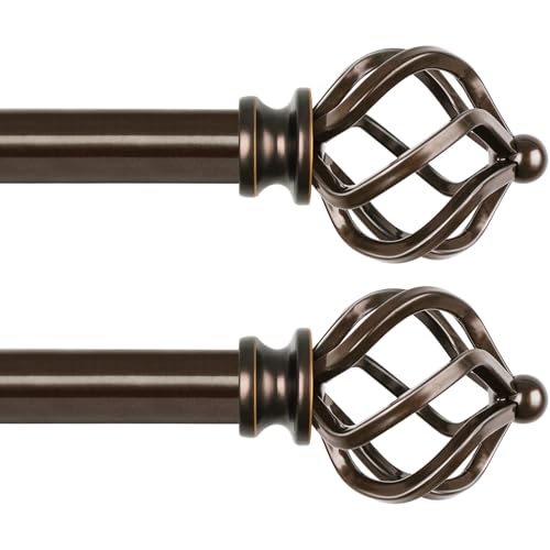 KAMANINA 2 Pack Curtain Poles 80 to 218 cm, Bronze Curtain Pole for Eyelet Curtains, Splicing and Telescoping Curtain Rod with Twisted Cage Finials