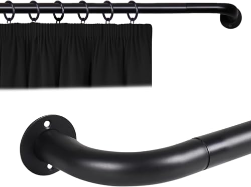 Imperial Rooms Curtain Pole Metal Extendable Room Darkening Blackout Curtain Rod with Curved Pole - Adjustable Curtain Poles for Eyelet Curtains (Matte Black, 160-300cm, 63 to 118 Inches)