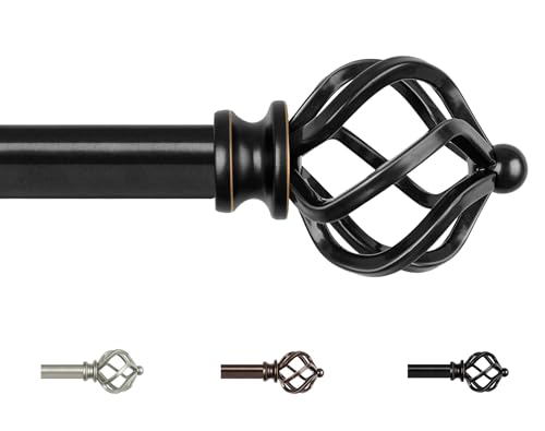 KAMANINA Curtain Poles 80 to 218 cm, Black Curtain Pole for Eyelet Curtains, Splicing and Telescoping Curtain Rod with Twisted Cage Finials