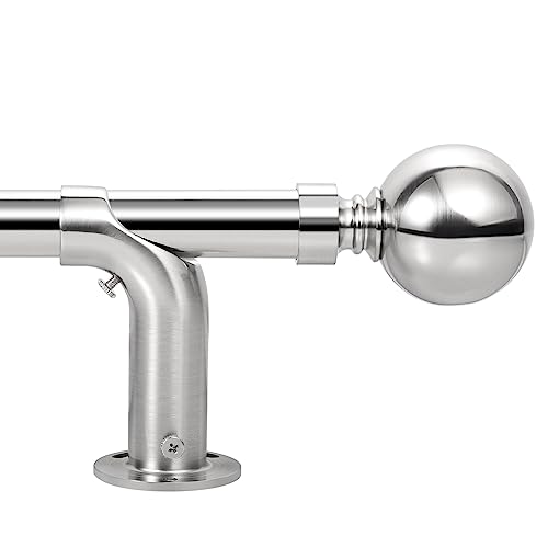 Darkening Curtain Pole Extendable 120-210cm(48-82"), Dia 22/25mm Adjustable Blackout Curtain Rod with 60mm Metal Ball Finials for eyelet curtains, Heavy Duty Decorative Windows Rods Brushed Nickel