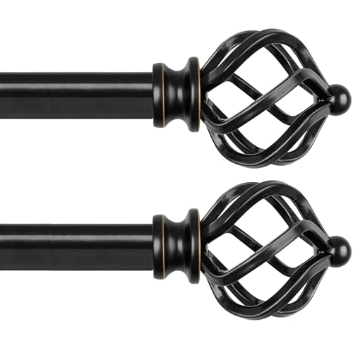 KAMANINA 2 Pack Curtain Poles 80 to 218 cm, Black Curtain Pole for Eyelet Curtains, 19 mm Diameter Splicing and Telescoping Curtain Rod with Twisted Cage Finials