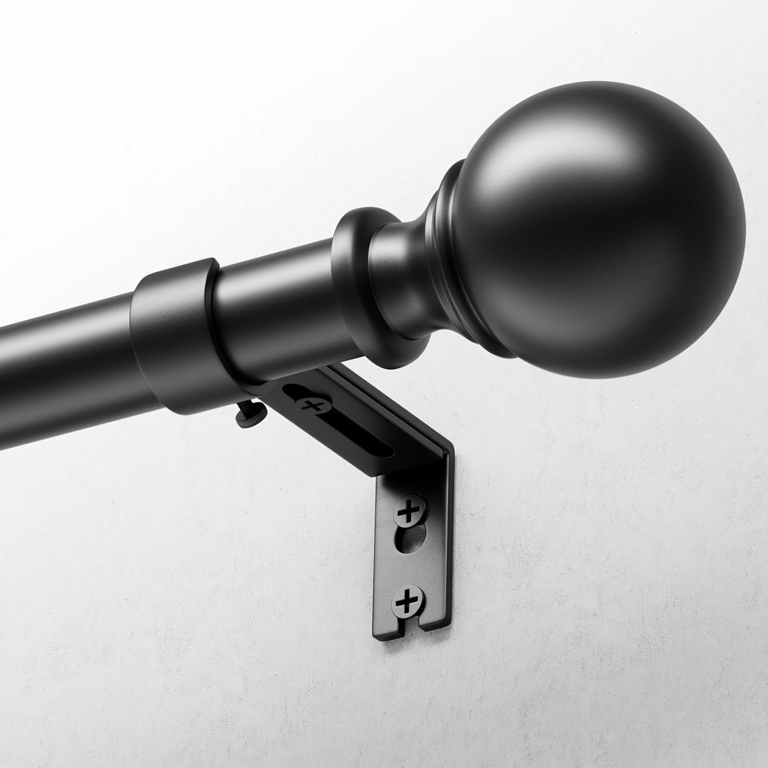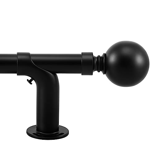 Darkening Curtain Pole Extendable 210-300cm(82-118"), Dia 22/25mm Adjustable Blackout Curtain Rod with 60mm Metal Ball Finials for eyelet curtains, Heavy Duty Decorative Windows Rods Black