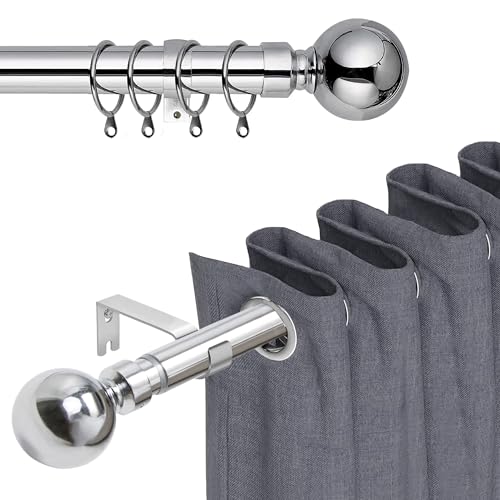 Curtain poles, 78 to 234 cm Silver Window Curtain Pole with Brackets Fittings Set for Eyelet Curtains, with Round Hollow Out Finials