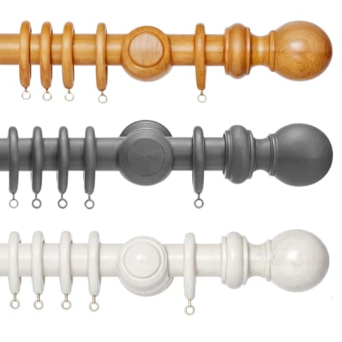 Wooden Curtain Pole – Fixed Length Premium Quality Bay Window Curtain Pole, Wooden Pole for Window and Eyelet Curtains