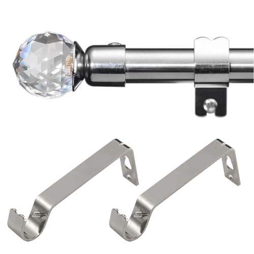 Curtain Poles, 1.6 cm Single Curtain Rods 76-157 cm, Curtain Poles for eyelet curtains for Bedroom, Door, Windows, Decorative Drapery Pole with Acrylic Diamond Finial, Silver