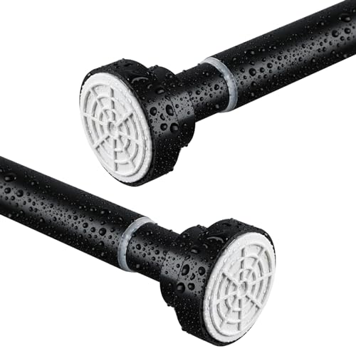 WELDUN 2 PCS Extendable Shower Curtain Rod, Curtain Tension Pole 48-118CM, No Drill Telescopic Curtain Pole, Adjustable Strong Shower Rail for Bathroom Bedroom Window Closet, Black