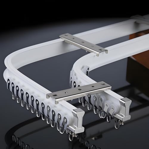 NOIRDA Bendable Double Curtain Track Rail, Flexible Curtain Track System, Ceiling Or Wall Mount, Guide Rail Curved For RV Room Divider Bay Windows(White-Ceiling,500cm(4 * 125cm))