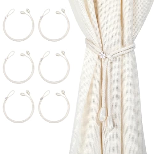 Glvomazty Galenecx 6 Pieces Curtain Tiebacks, Cotton Curtain Tiebacks, Woven Rope Tiebacks, Adjustable Curtain Tiebacks for Home and Office(Beige)