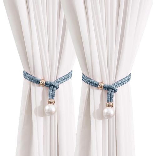 JanFebMar Pack of 2 Curtain Tiebacks, Handmade Curtain Holders, Adjustable Cotton Curtain Tape, Holder for Home, Living Room, Office, Window, Decorative Night Pearl, Deep Blue