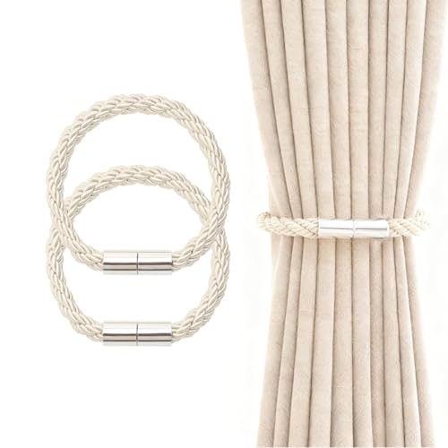 HattusaShield 2 Pcs Strong Magnetic Curtain Tiebacks, Curtain Clip Cord Buckle Weaving Clip, Modern Simple Style Drape Tie Backs, for Thin or Thick Home Office Window Drapery (Beige)