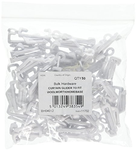 Merriway BH04012 (50 Pcs) White Curtain Rail Track Gliders Glide Hooks to Fit Woolworth/Homebase Track - Pack of 50 Pieces