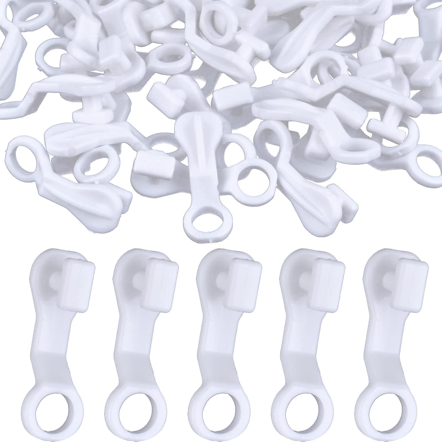 50 Pcs Curtain Track Gliders - Plastic White Hook Rollers for Effortless Glidin