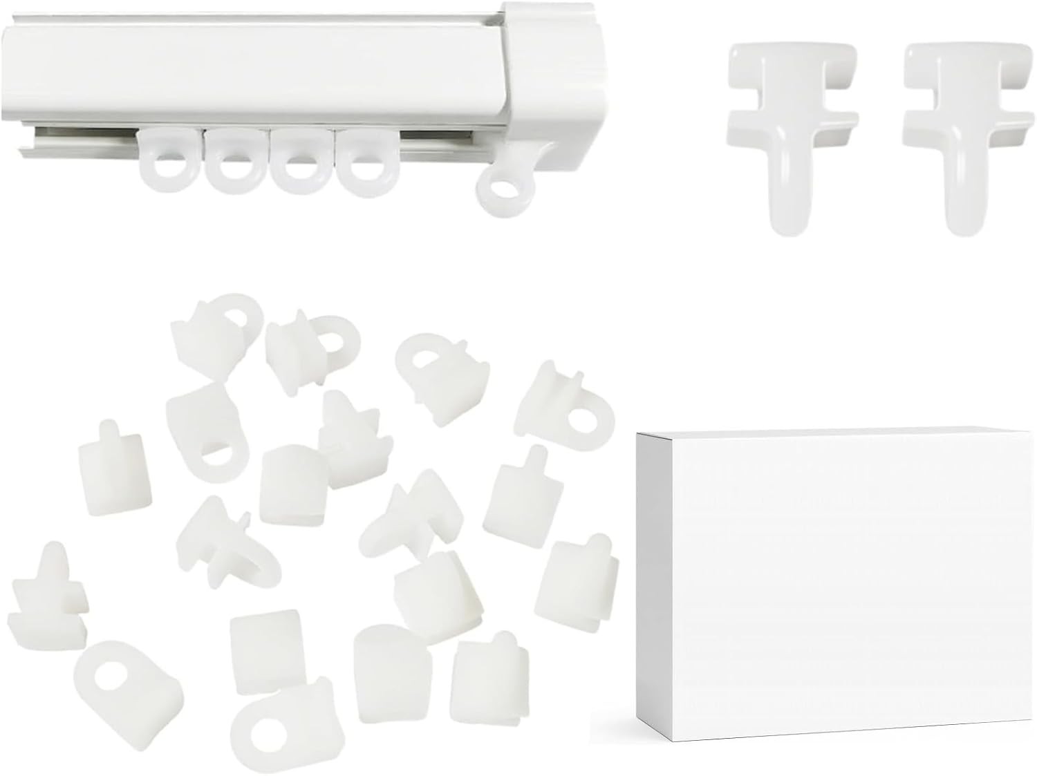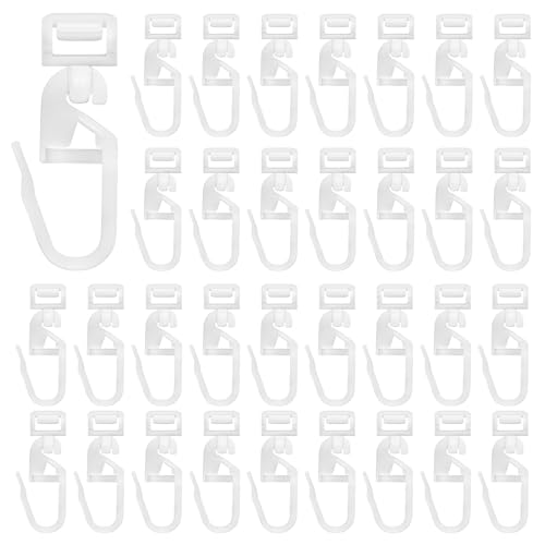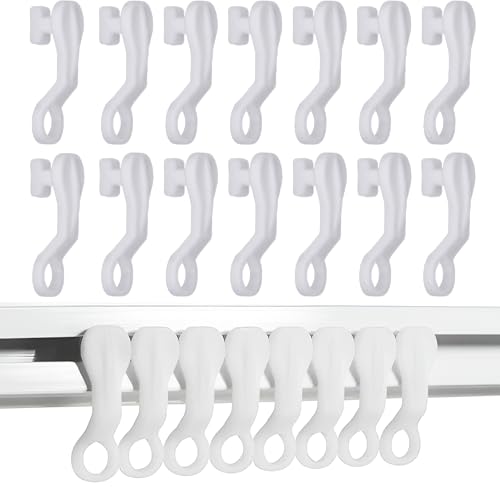 kuou 50 PCS Curtain Hooks White Plastic Curtain Track Hooks Gliders Rail Slidin