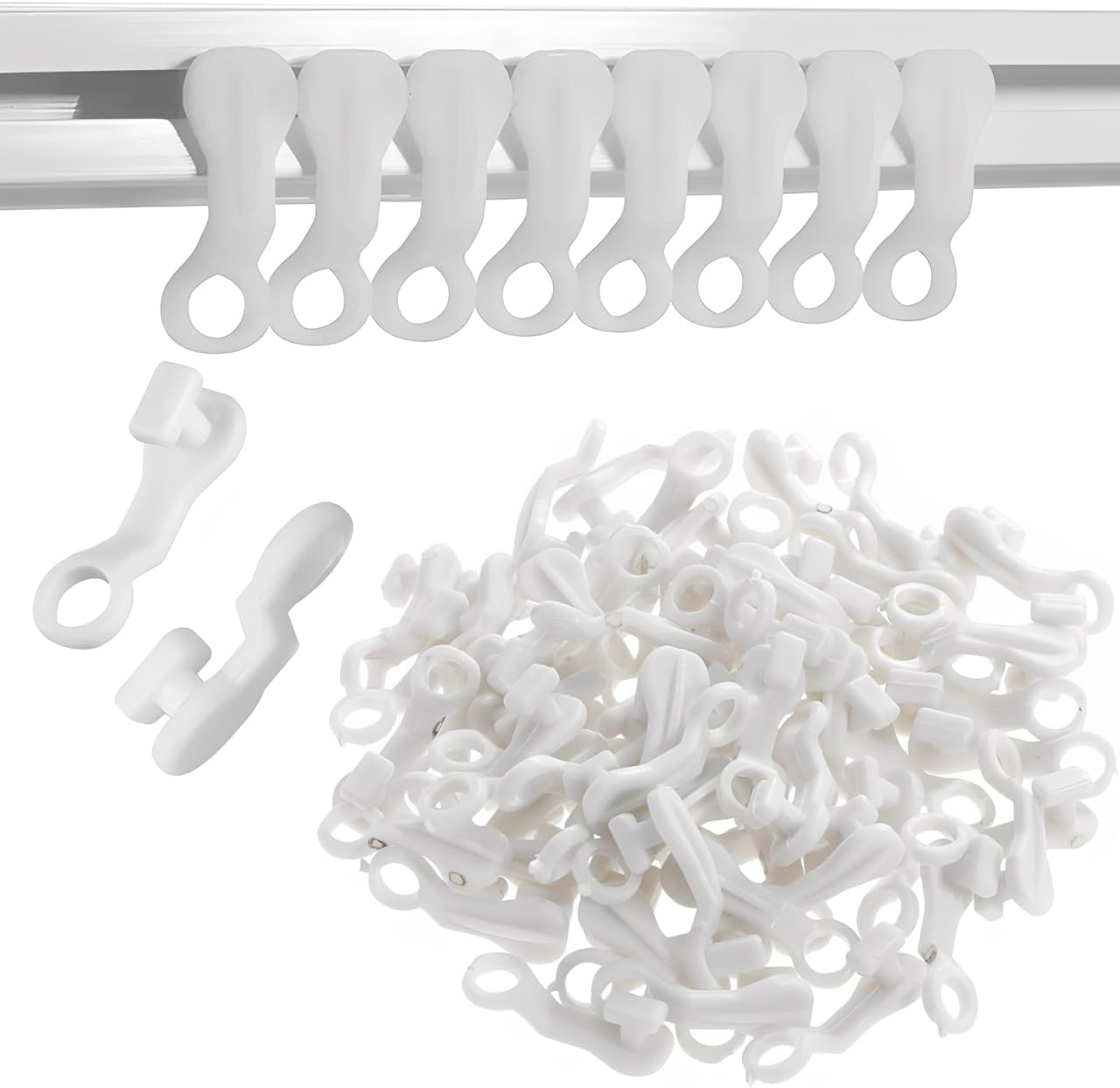 White Curtain Track Gliders Hooks,100 Pcs Curtain Glider Hooks for Slim Track W