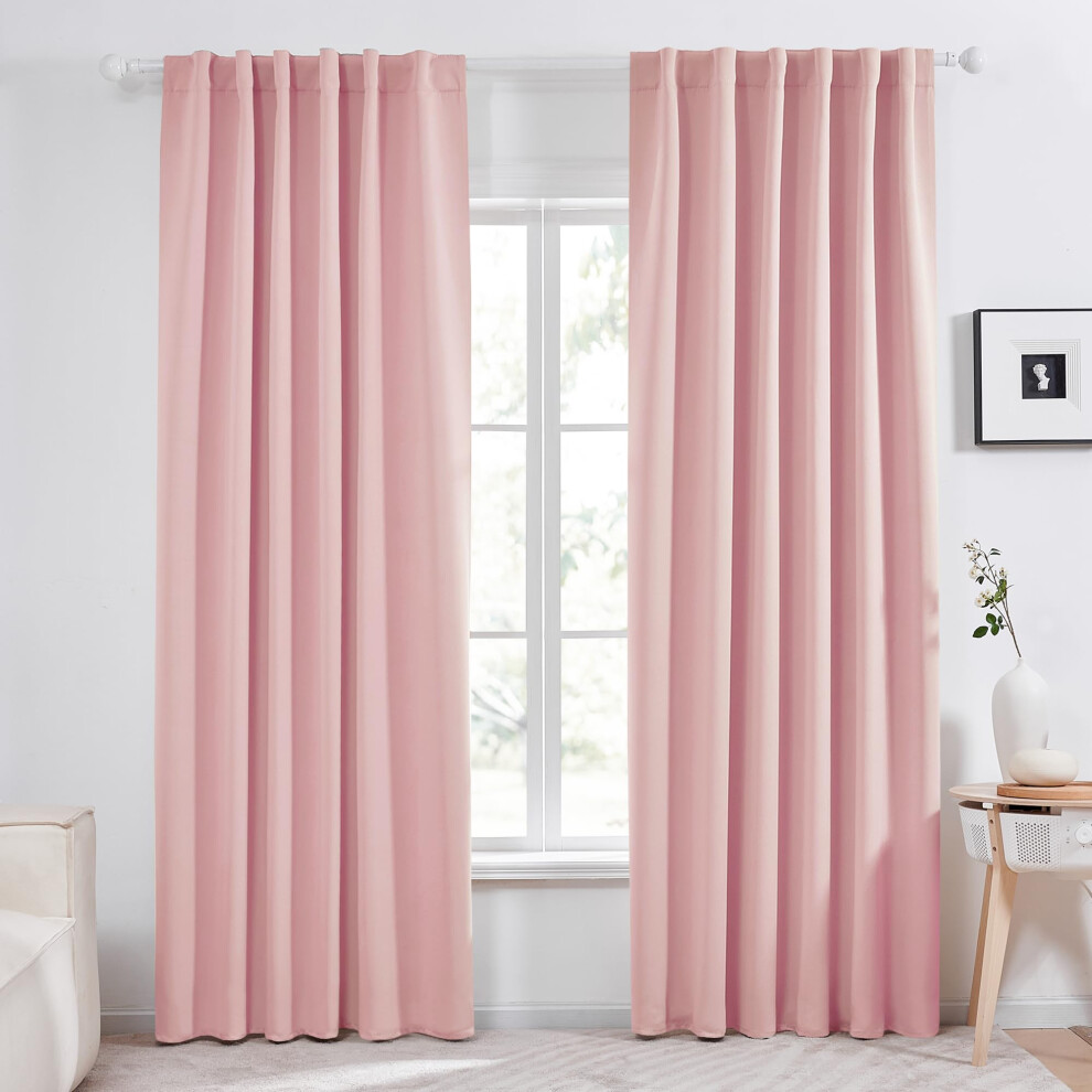 Deconovo Extra Long Blackout Curtains Back Tab and Rod Pocket Thermal Insulated Room Darkening Curtains for Bedroom - 52x108 Inch Coral Pink 2 Pane