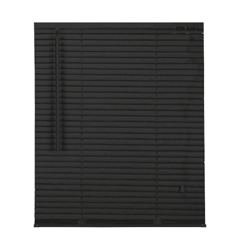 APEX FURNISHINGS PVC Venetian Blinds - 25mm Slats Easy Fit PVC Window Blinds Child Safe Fittings Trimmable curtains Windows Shutters for Home Office (Black 110W x 150L cm)