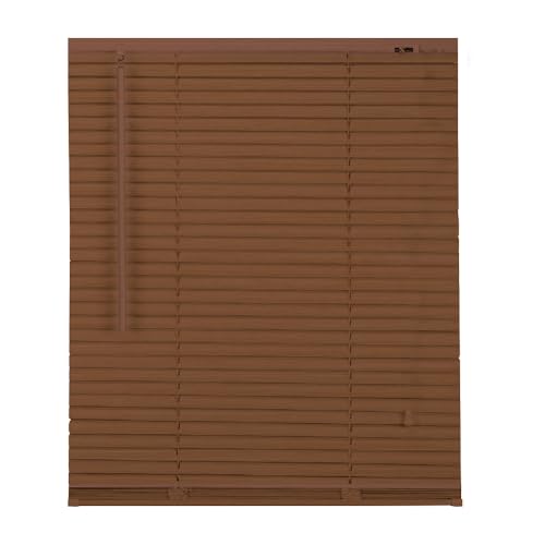 PVC woodgrain effect windows shutters for privacy home offices Blinds - Strong Trimmable Easy fit child safe window curtains - Teak colour - Width 105cm x Drop 213cm