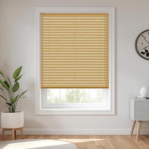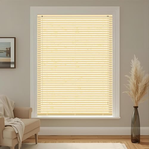 PVC woodgrain effect windows shutters for privacy home offices Blinds - Strong Trimmable Easy fit child safe window curtains - Natural colour - Width 75cm x Drop 213cm