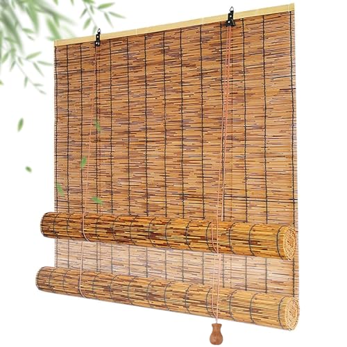 JIAOLUN123 Bamboo Roller Blind Blackout Roller Blinds Curtains Privacy Drape Protection Roman Window Blind Sun Shade Shutter,Door Curtain,for windows and doors,balcony,Patio,Porche (80 x 100 cm)
