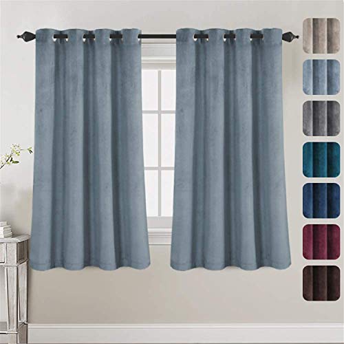 LINFKY Velvet Blackout Curtains Thick Thermal Insulated Window Curtains and Drapes Super Soft and Durable Room Darkening Grommet Curtains 2 Panel for Bedroom, Living Room (Stone Blue,2x52 Wx63 L)