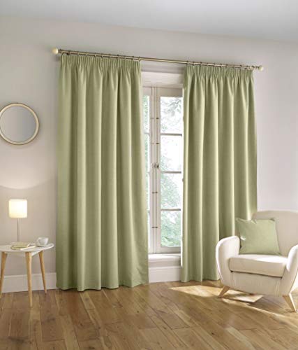 Enhanced Living Harvard Green Linen 100% Blackout Thermal Tape Top Curtains - 66 x 72 inch (168 x 183cm) - Energy Saving & Noise Reducing Curtains for Living Room & Bedroom