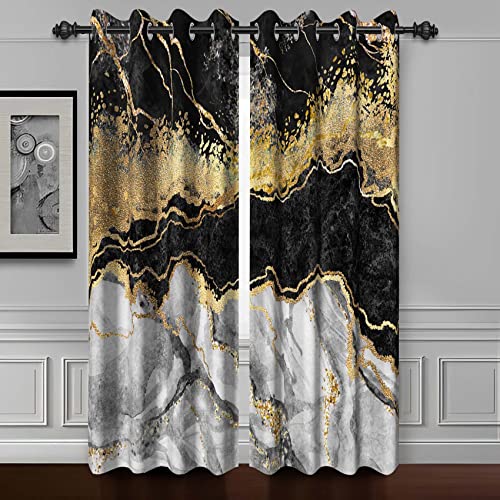 Baocicco Black Gold Marble Window Curtains for Bedroom Art Design - Grey Drapes for Living Room Modern Luxury Gold Texture Blackout Curtains With Grommets 2 Panels 53x96 Inch