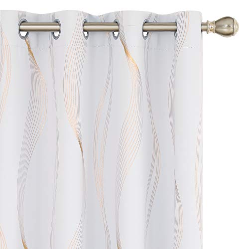 Deconovo Blackout Eyelet Curtains Thermal Insulated Gold Wave Line Foil Printed Curtains for Bedroom 46x72 Inch Light Grey 2 Panels