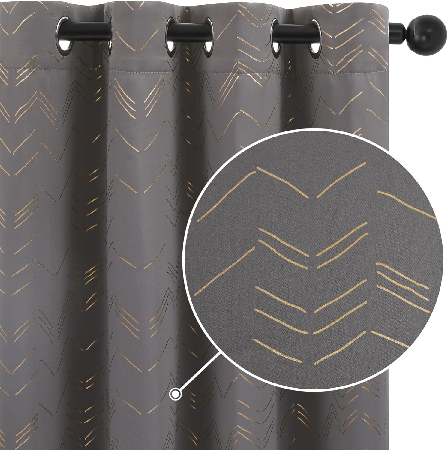 Deconovo Grey Curtains 66 x 54 Inch Gold Zigzag Lines Foil Printed Thermal Eyel