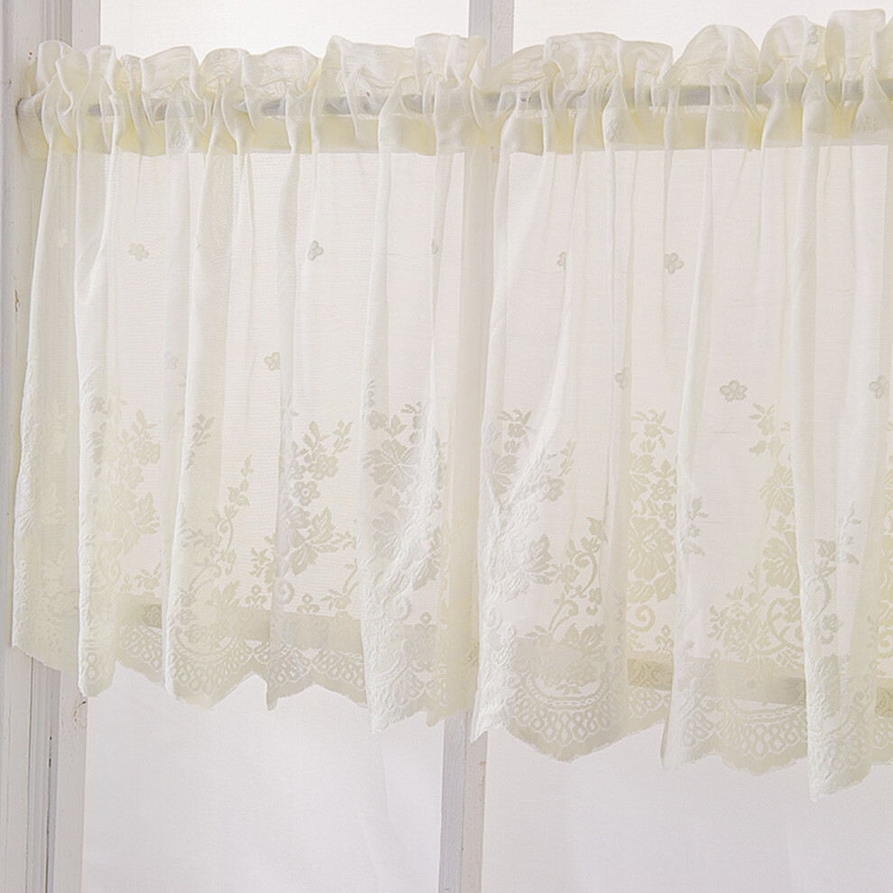 Elegant Embroidery Flower Pattern Valance, Airy Feel Indoors with Floral Embroidered Lace Sheer Half Curtains, Romantic Atmosphere, Lightweight