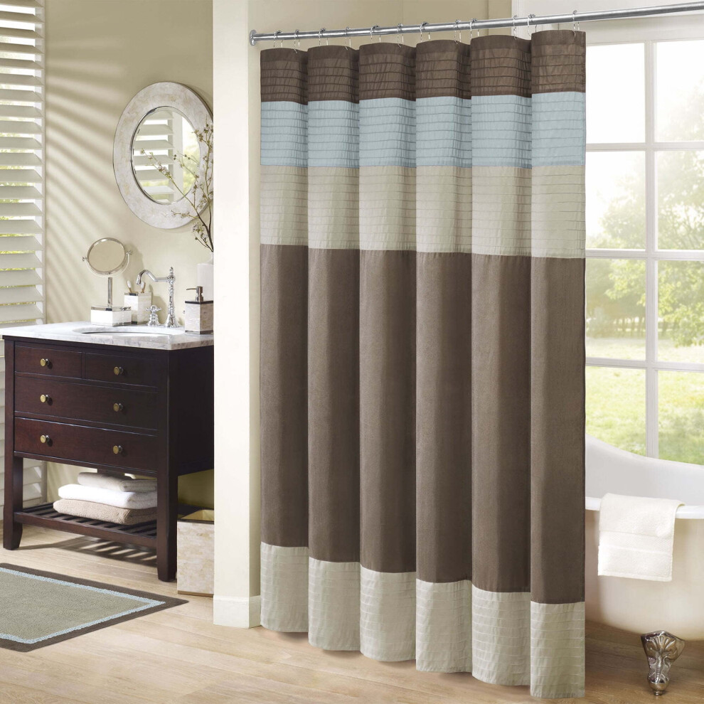 Blue Shower Curtain, Striped Faux Silk Bathroom Shower Curtains, Washable Pieced Lightweight Bath Shower Curtain,