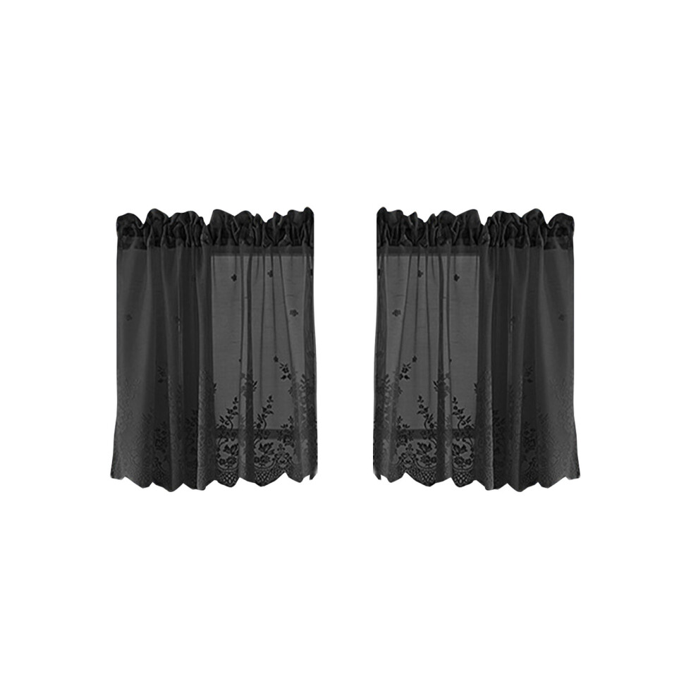 Half Window Curtains for Kitchen, Rod Pocket Design Short Panels with Embroidered Lace, Sheer Lightweight Curtains Providing Airy Feel and Partial