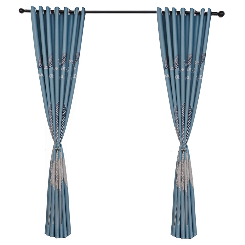 (Blue) Polyester Pongee Rod-Pull Light-blocking Curtains Living Room Sun-Blocking Curtains Heat-Insulating And Soundproof Curtains