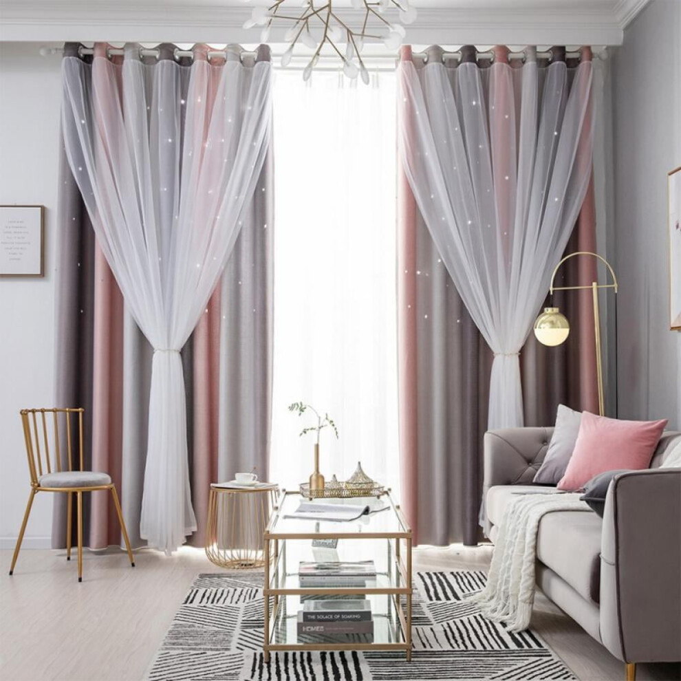 Blackout Curtains for Girls Boys Bedroom, Double Layer Star Window Curtains, Colorful Starlight Living Room Curtains, 1 Panel