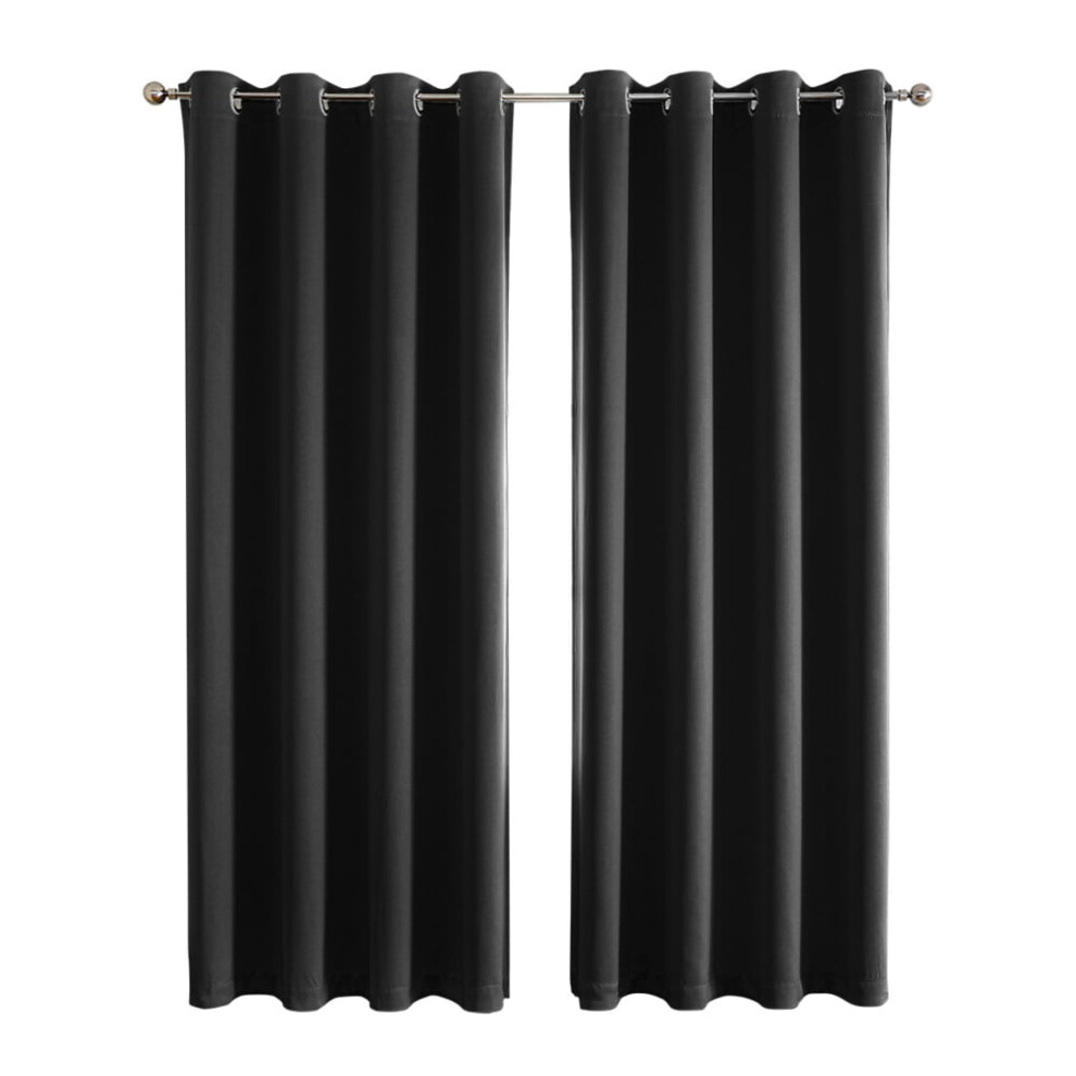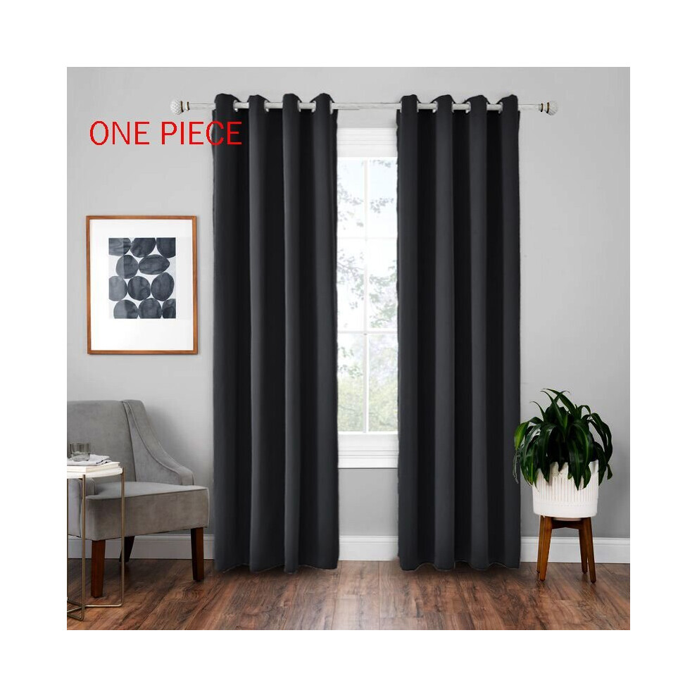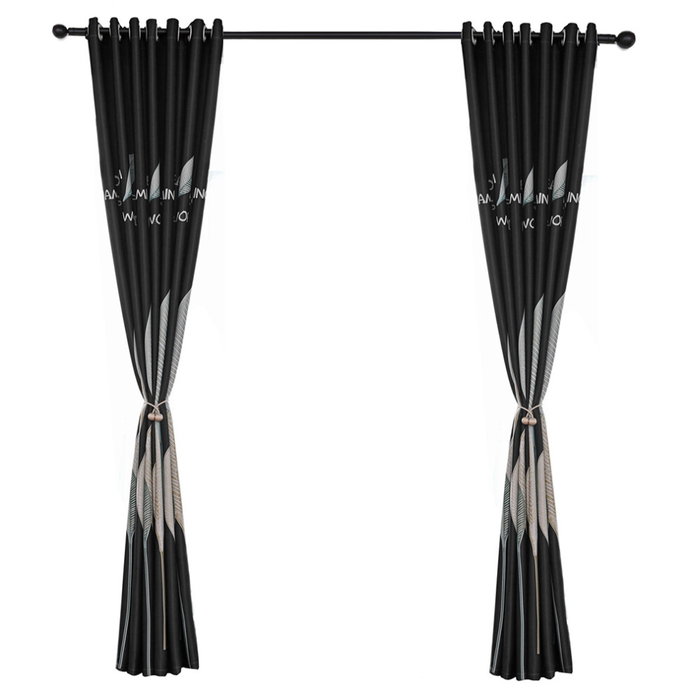 (Black) Polyester Pongee Rod-Pull Light-blocking Curtains Living Room Sun-Blocking Curtains Heat-Insulating And Soundproof Curtains