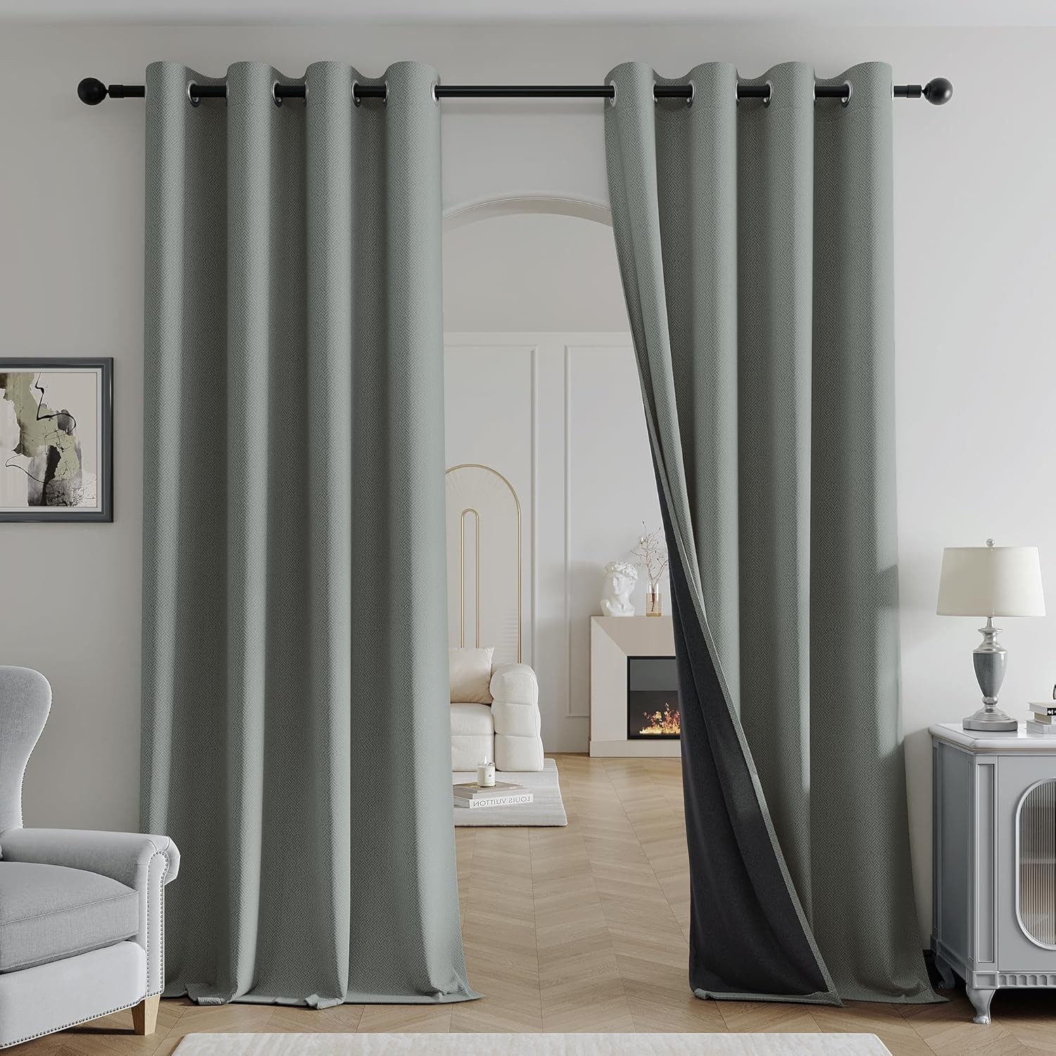 Noise Reduction Curtains for Living Room, Blackout Curtains with Thermal Insulated Room Darkening Technology, Grommet Window Curtains Triple-Weave Con