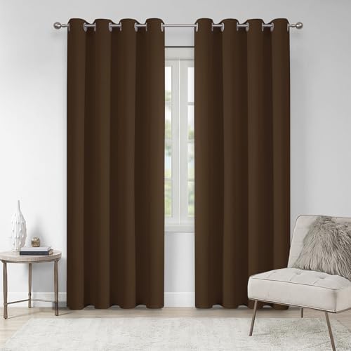 VEHEDE Soft Blackout Curtains for Living Room, Thermal Curtains for Bedroom, Window Treatments Drapes for Room Darkening, Eyelet Black Out Curtain, W46 x L63 Inch, Brown, 2 Panels