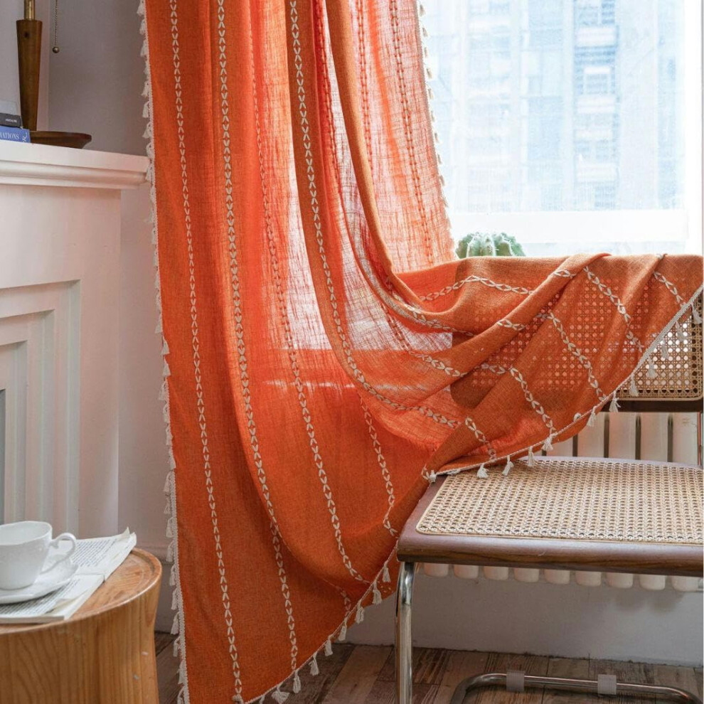 Bohemian Striped Embroidery Curtains Living Room Rod Pocket Curtains, SemiSheer, Orange, 160300x150 cm