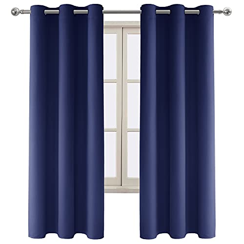 VEHEDE Soft Navy Blackout Curtains for Living Room, Thermal Curtains for Bedroom, Window Treatments Drapes for Room Darkening, Eyelet Black Out Curtains, W46 x L63 Inch, Navy Blue, 2 Panels