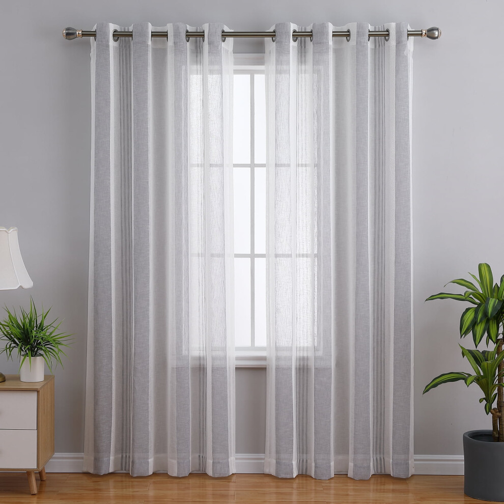 Haperlare 52" x 84" Sheer Window Curtains Farmhouse Stripe Living Room Curtains Grommet Light Filtering Voile Drapes, Light Gray, 2 Panels