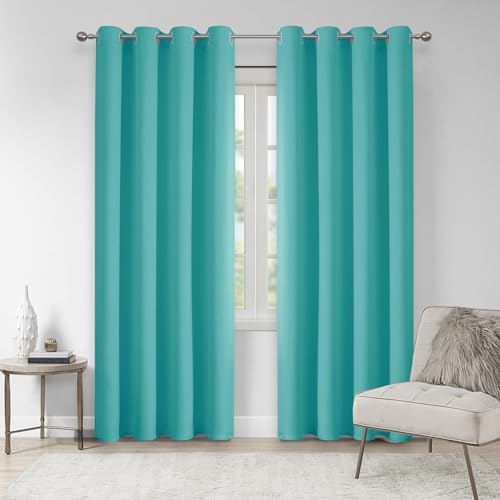 DWCN Curtains for Living Room Blackout Curtains for Bedroom Eyelet Curtains Window Treatments Curtain 46 x 72 Inch 2 Panels Turquoise