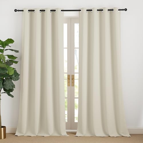 NICETOWN Thermal Cold Protection Curtains 240 cm Long Beige Curtain Opaque Curtain Blackout Curtain Eyelet Curtains Living Room Modern Over Curtains Eyelet Curtain Set of 2 Light Beige H 240 x W 140