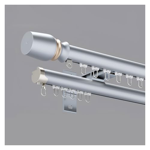 Double Curtain Rod for Windows, Heavy-Duty Track Curtain Rails with Aluminum Brackets Wall Mount Silent Curtains Pole for Room Divider Living Room Bedroom(Grey,250cm/8.2ft(2 * 125cm))