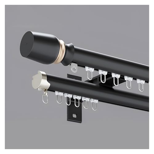 Double Curtain Rod for Windows, Heavy-Duty Track Curtain Rails with Aluminum Brackets Wall Mount Silent Curtains Pole for Room Divider Living Room Bedroom(Black,180cm/5.9ft (2 * 90cm))
