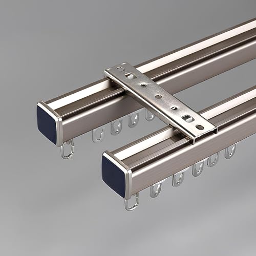 Aluminum Double Ceiling Track, Heavy Duty Silent Curtain Rail, 70-600cm(2.3-19.6ft) Room Divider Straight Curtains Rod Pole, Ceiling Or Wall Mounte(Champa Wall,300cm/9.8ft)