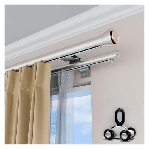 Double Curtain Track Wall Mount, Roman Rod For Curtain, Aluminum Heavy-Duty Silent Rail, Sliding Curtains Pole With 4-Wheel Pulley, For Room Divider(Champagne,260cm/8.5ft(2 * 130cm))