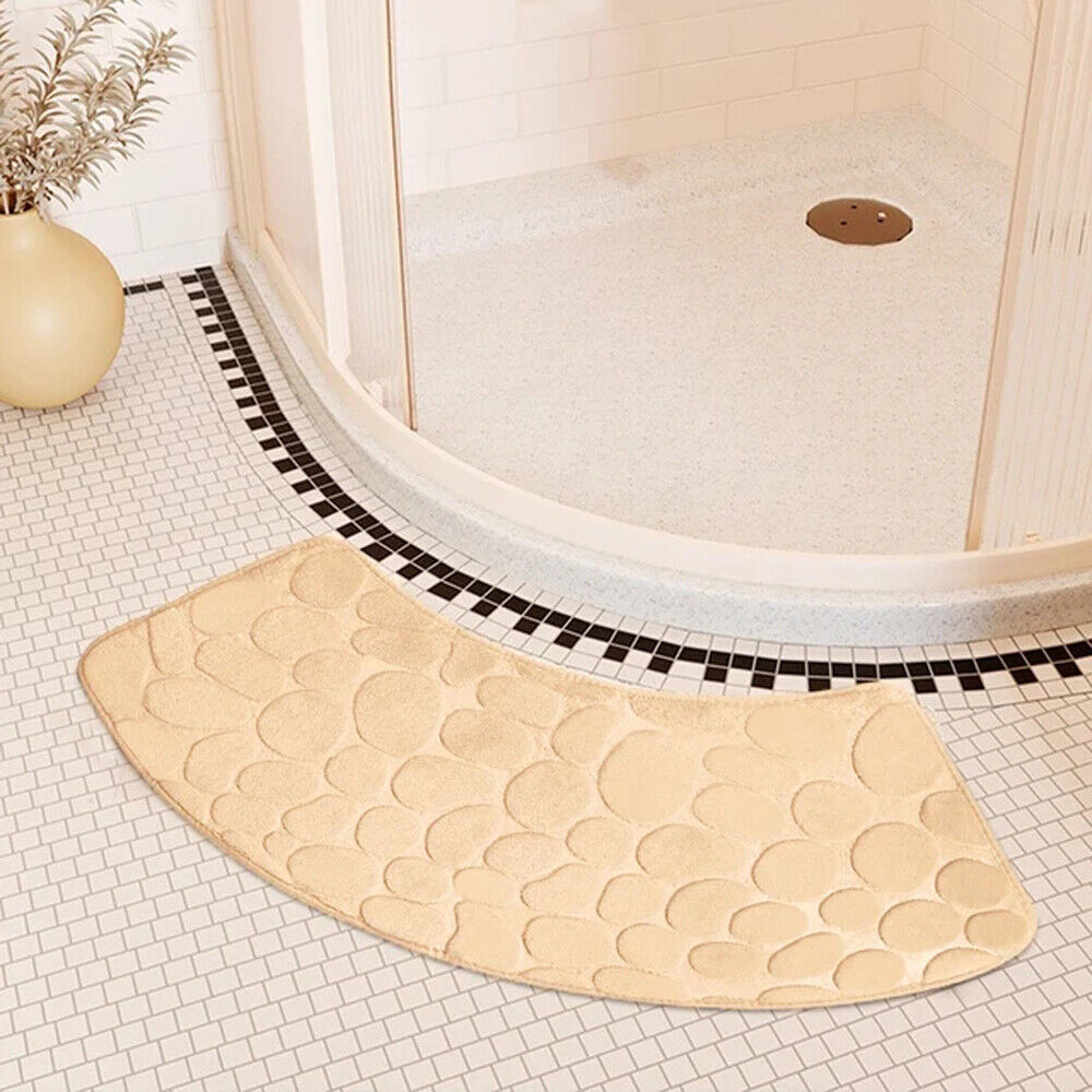 Bathroom Mat Non-slip Curve Foot Mat Pebble Emboss Carpet Curved Bath Mat UK