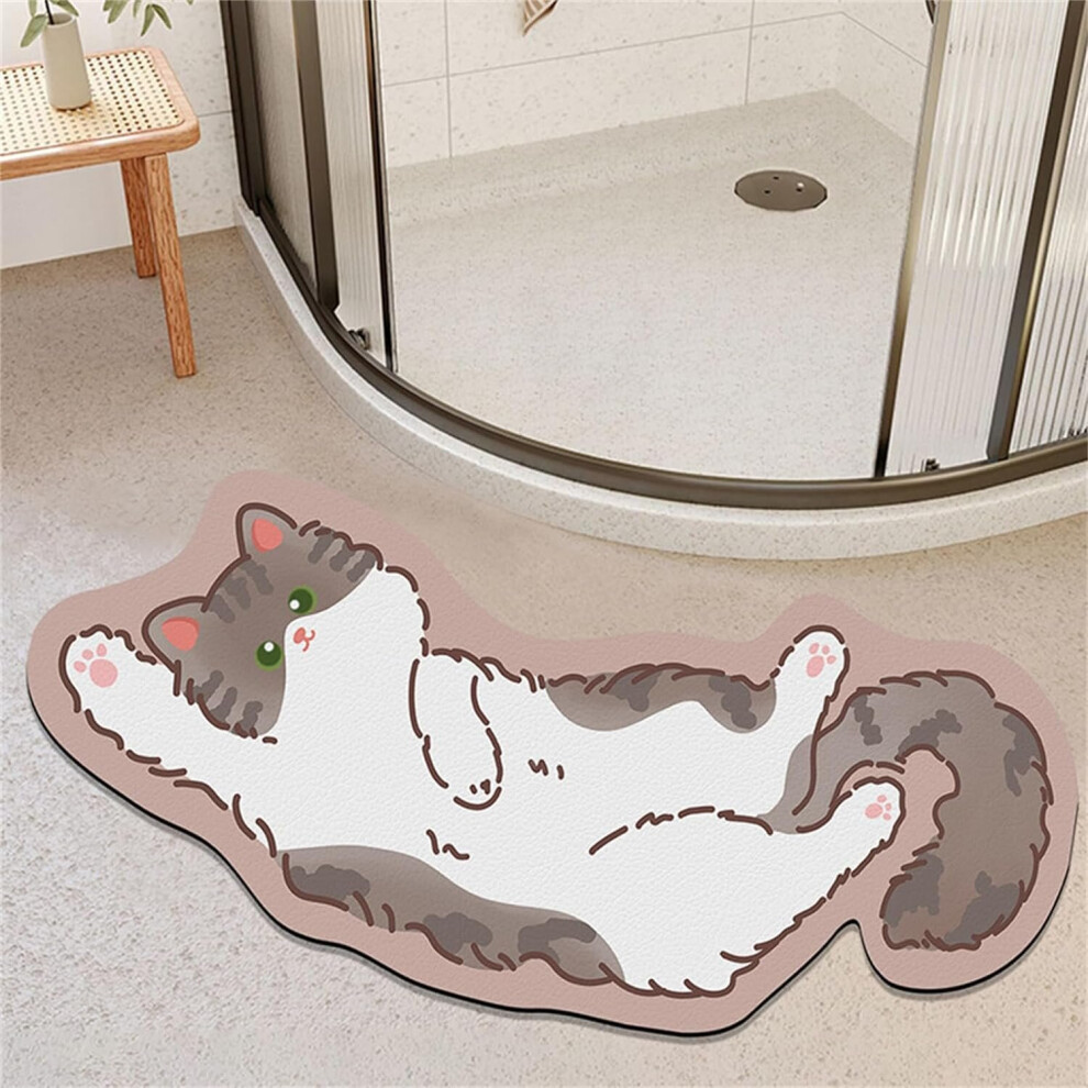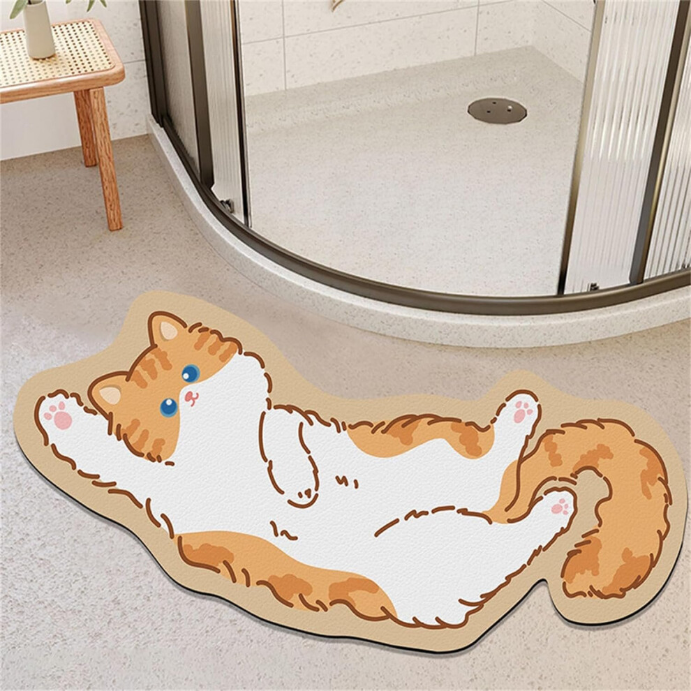 Diatomite Stone Bath Mat Quick Dry Curved Bath Mat for Shower Non-Slip Bath Mats for Indoor Bathing Cute Cat Absorbent Fan-shaped Floor Mat