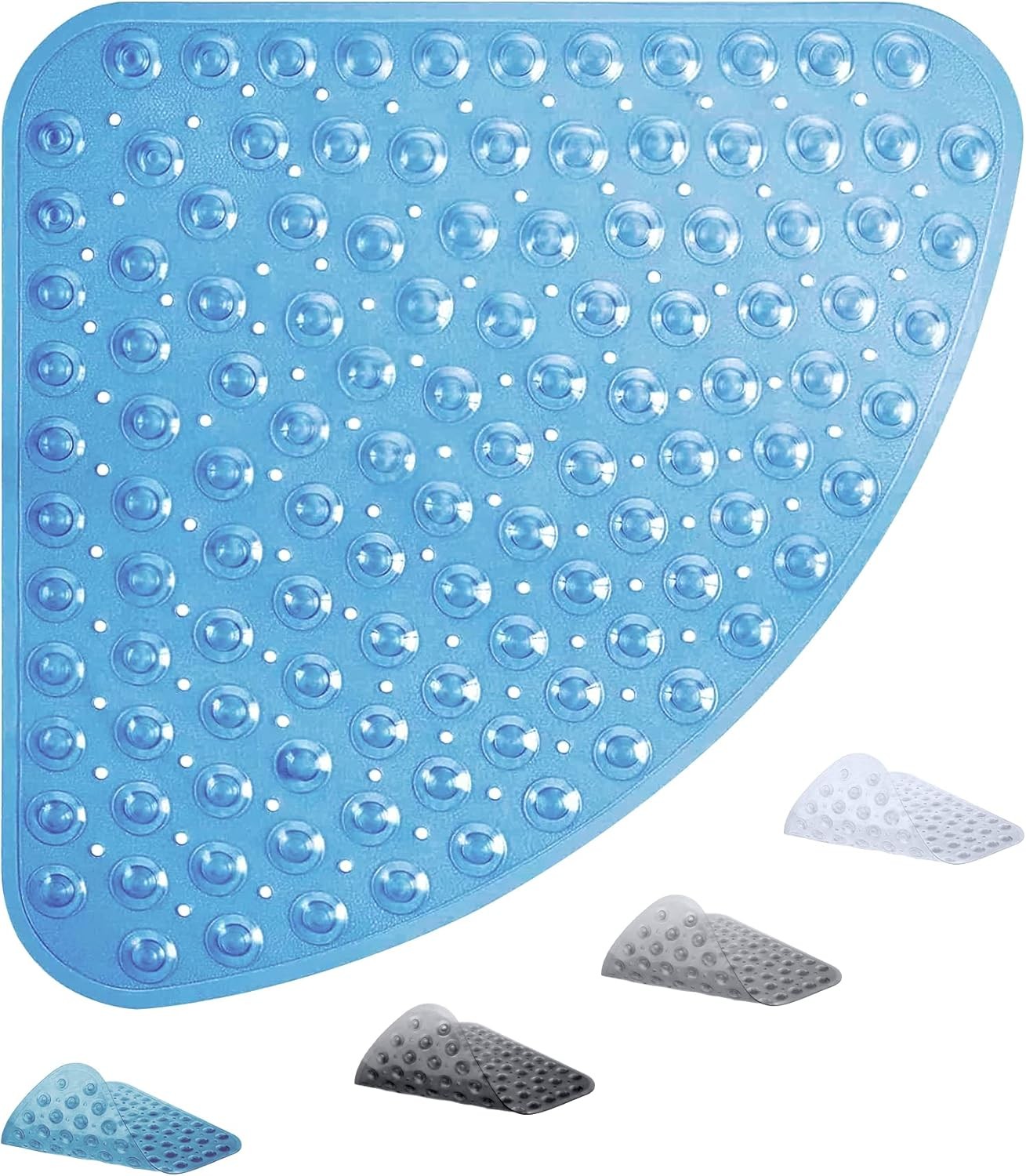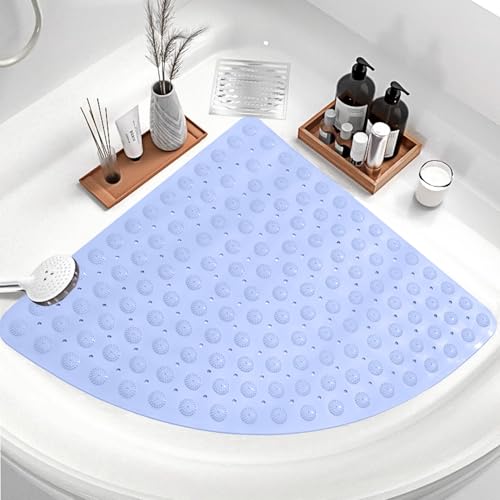 Wintfarm Corner Shower Mat Non Slip,65x65 Cm Large Bath Mat Non Slip Anti Mould,Curved Shower Mats for Inside Shower with Drain Hole Massage,Machine Washable Antibacterial (Blue)