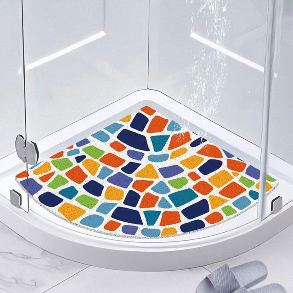 Curved Bath Mat for Quadrant Bathroom Cubicle, 10s Super Absorbent Fan-Shaped F